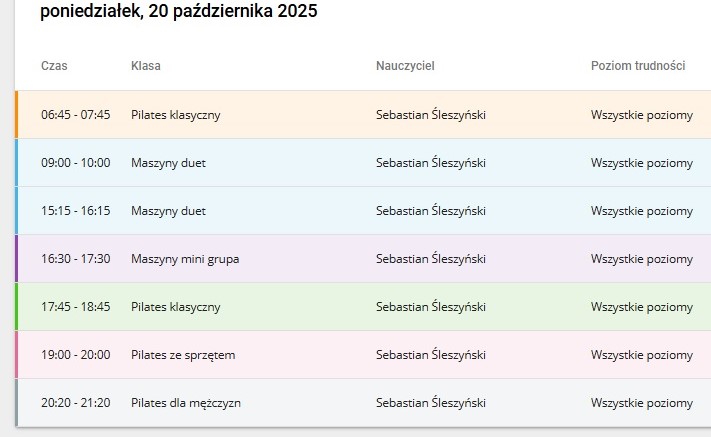 W związku z zapytaniami kierowanymi do instruktorów w Studio pragniemy poinformować, że w dniu dzisiejszym tj. 14.10.2025r został zaktualizowany grafik zajęć. Na chwilę obecną można ponownie zapisywać się na kilka zajęć na przyszłość. Wystarczy tylko podczas rezerwacji wybrać taką opcję. Możliwość rezerwacji kilku terminów pozwala na zaoszczędzenie przez Was czasu i zapewnia pierwszeństwo w dostępności wzięcia udziału w zajęciach.